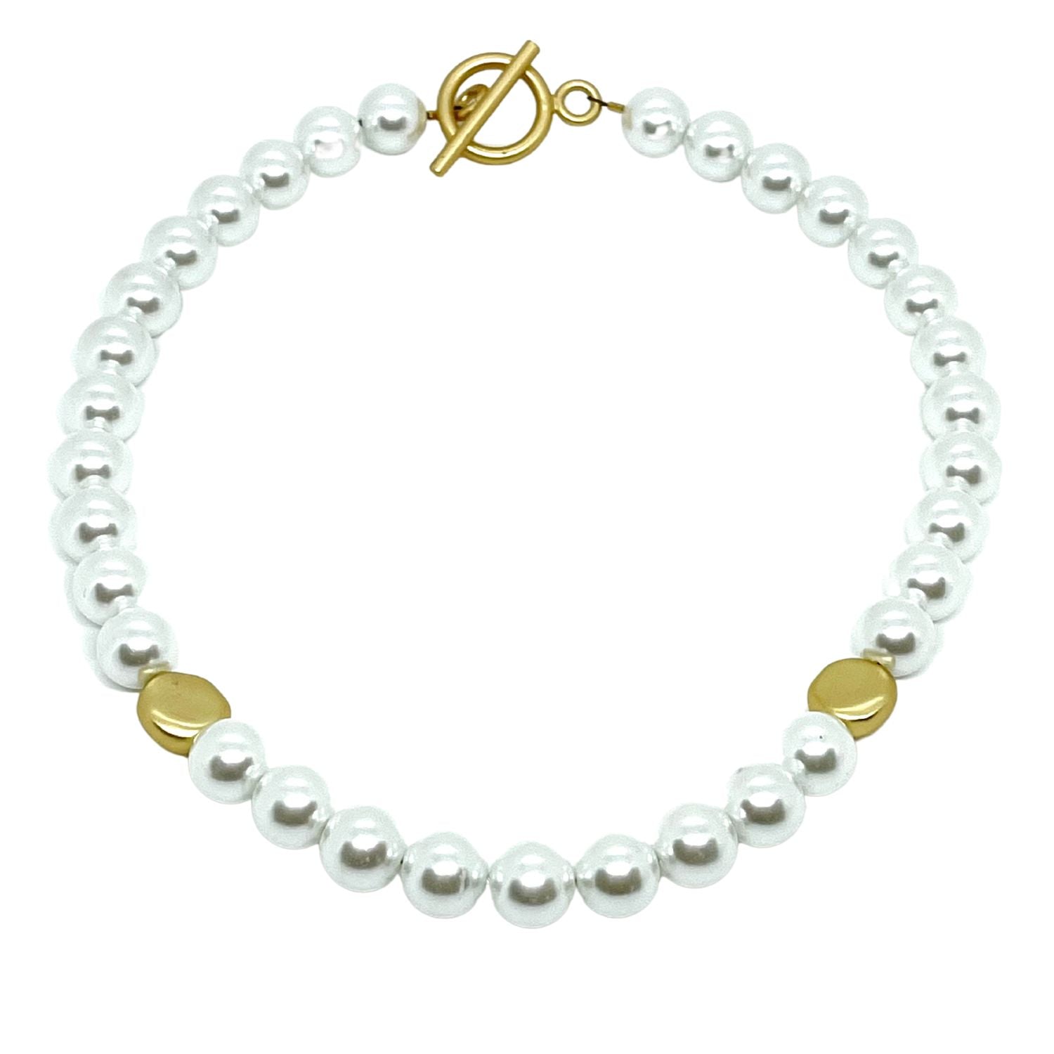 Glass Pearl Beaded Necklace With Matte Gold Nugget Accents