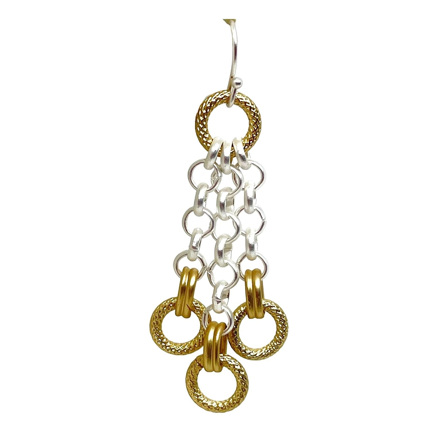 Three Strand Matte Silver Chain Earrings with Matte Gold Roundels