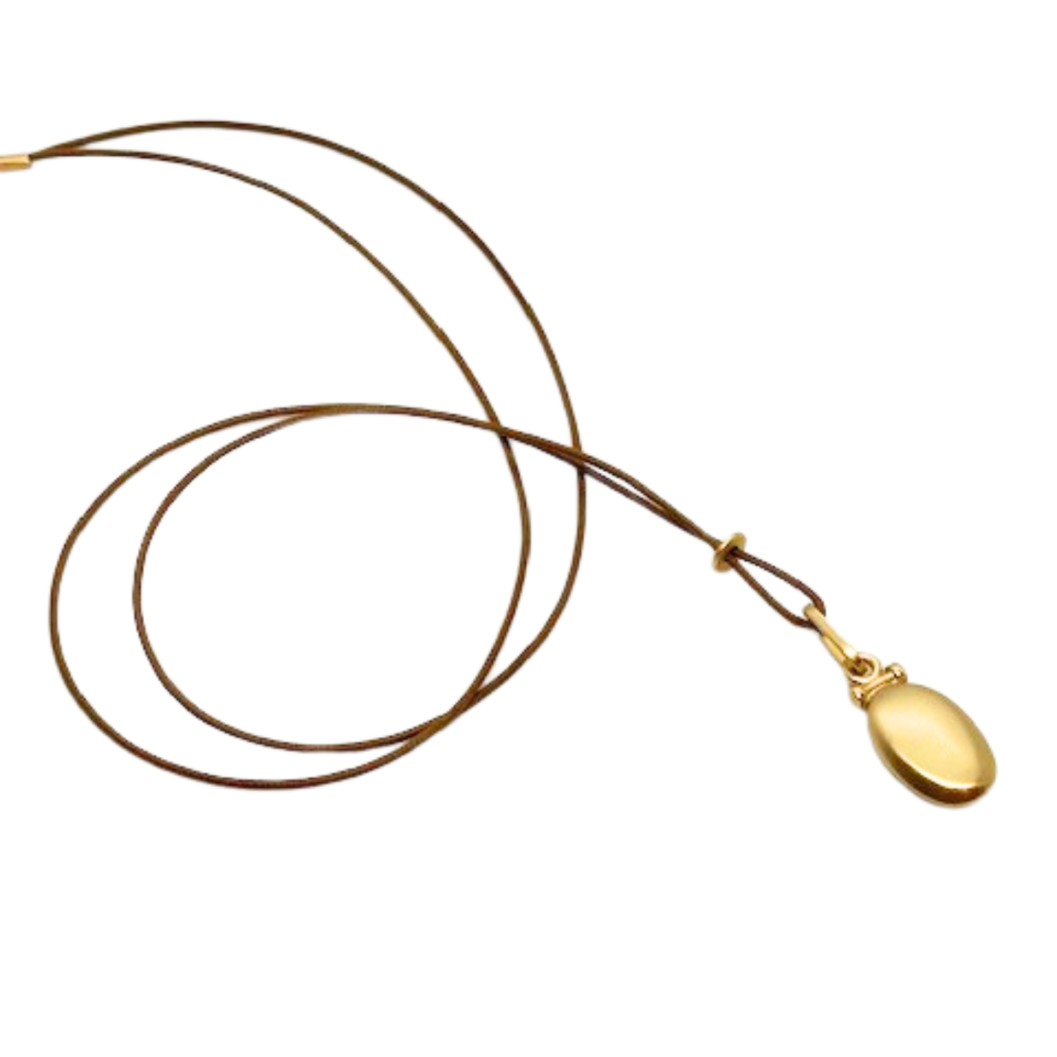 Matte Gold Pillow Style Pendant On 36" Bronze Linen Cord