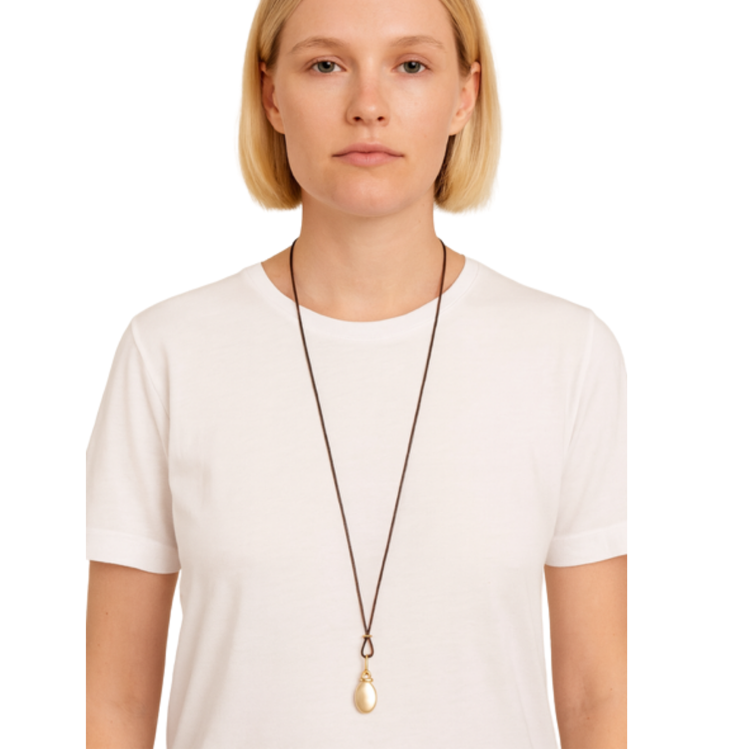 Elevate your style with this stunning matte gold pillow pendant on a rich bronze waxed linen cord that measures 36 inches for the perfect length.
