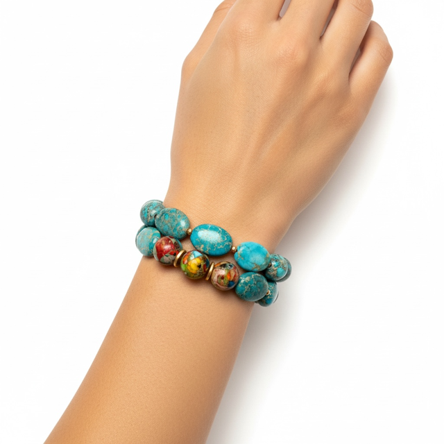 Oval Turquoise Aqua Terra and Multi Jasper Bracelet
