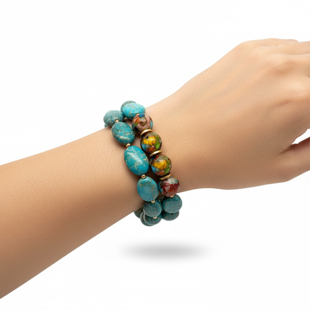 Turquoise Aqua Terra Oval and Bead Bracelet