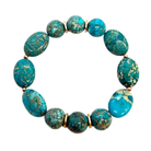 This stretch bracelet features smooth turquoise aqua terra jasper ovals paired with complementary beads and accented by warm matte gold disk spacers.