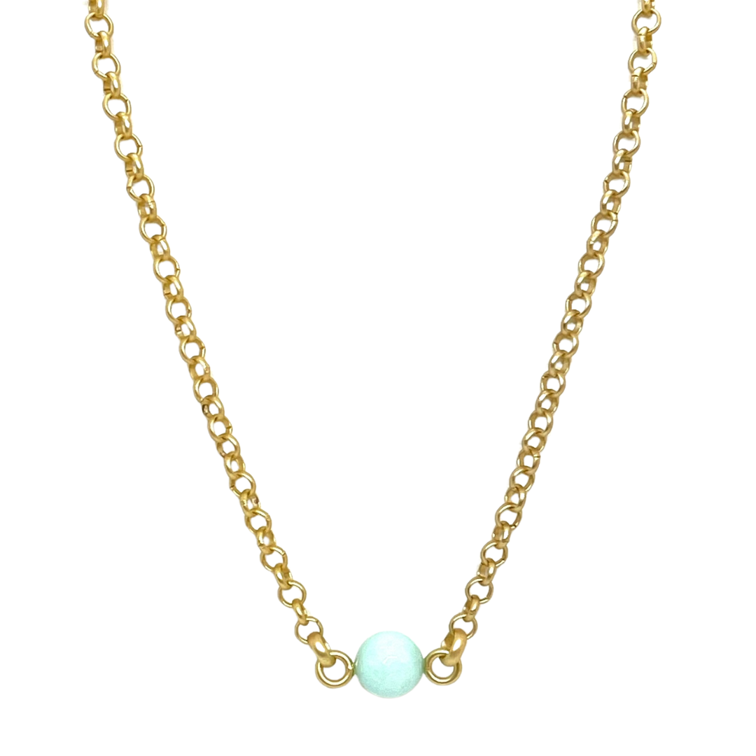 Aqua Jade on Matte Gold Rolo Chain