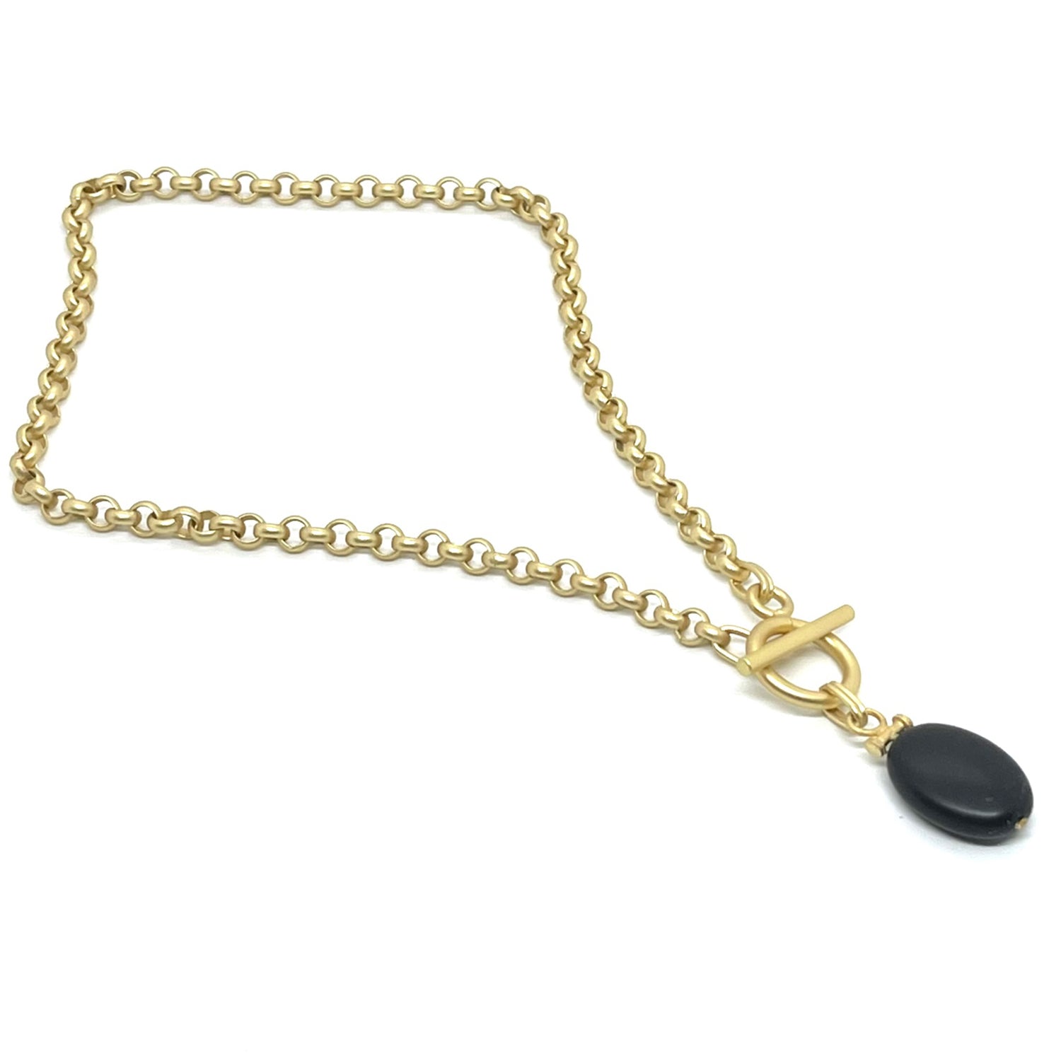 Matte Black Onyx Bar Pendant Matte Gold Chain Necklace