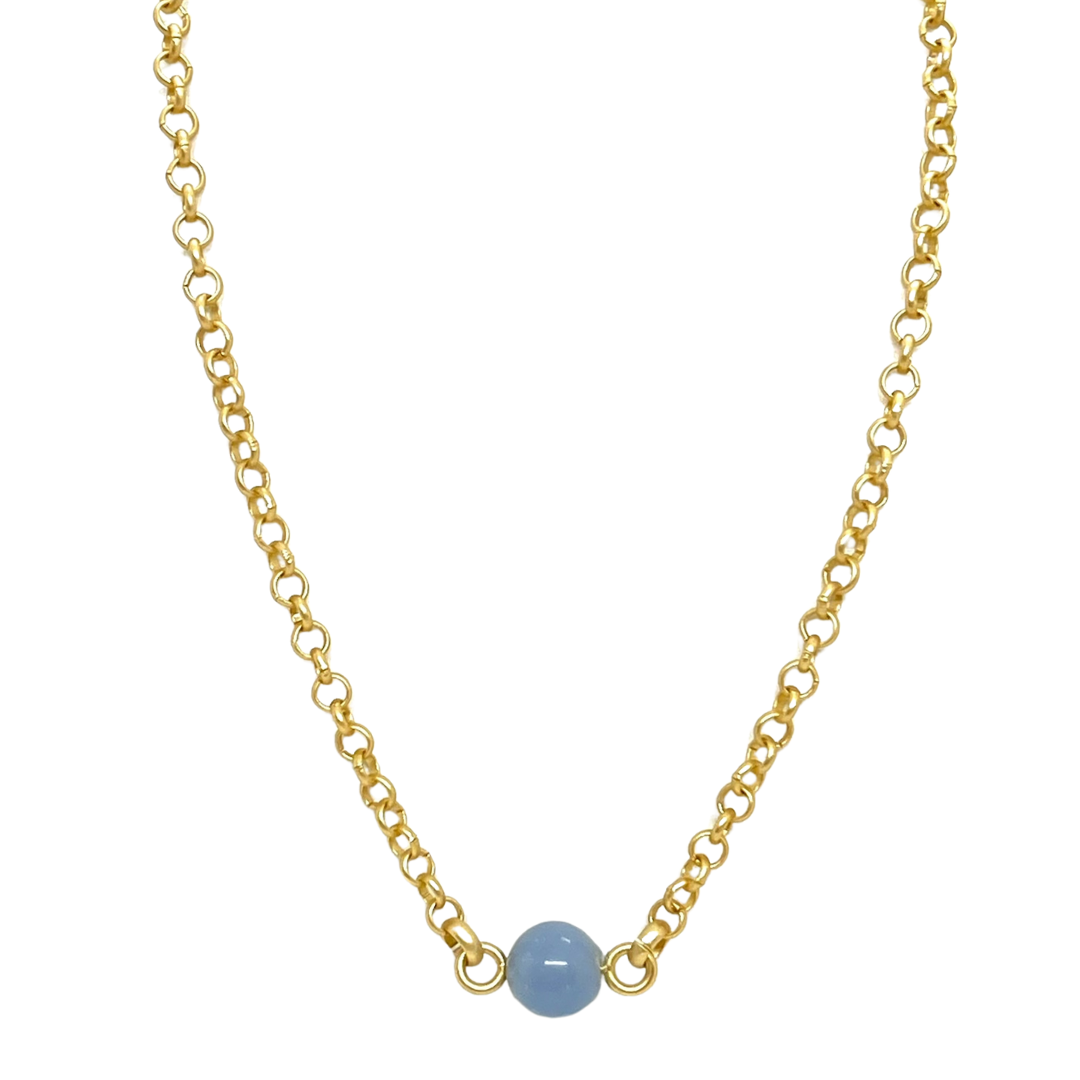 Blue Angelite on Matte Gold Rolo Chain Necklace