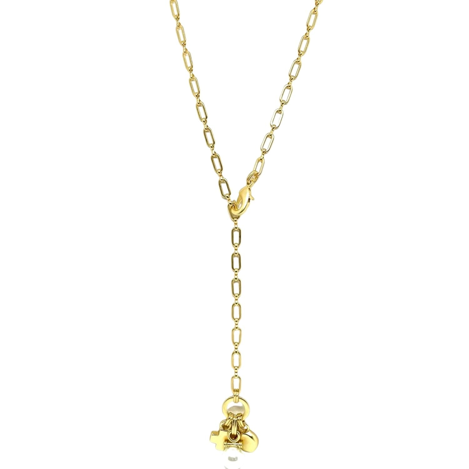 Matte Gold Pearl Adjustable Paperclip Charm Y Necklace