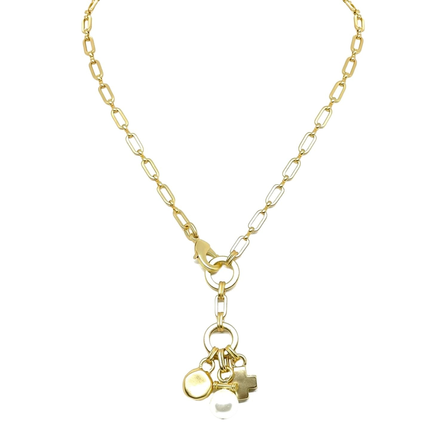 Matte Gold Paperclip Chain Pearl Cluster Charm Necklace