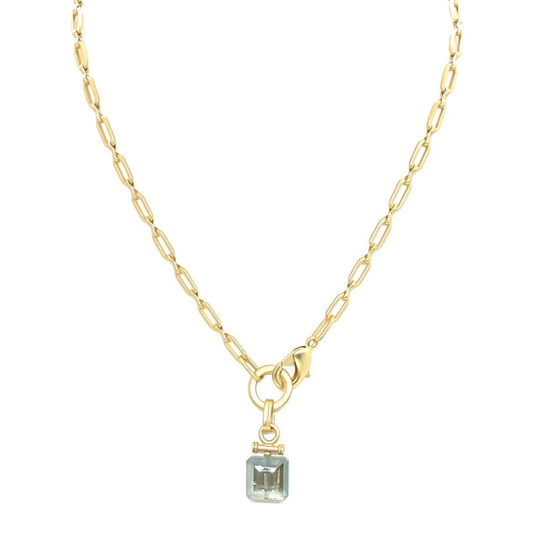 Square Olive Crystal Front Closure Necklace On Matte Gold Chain