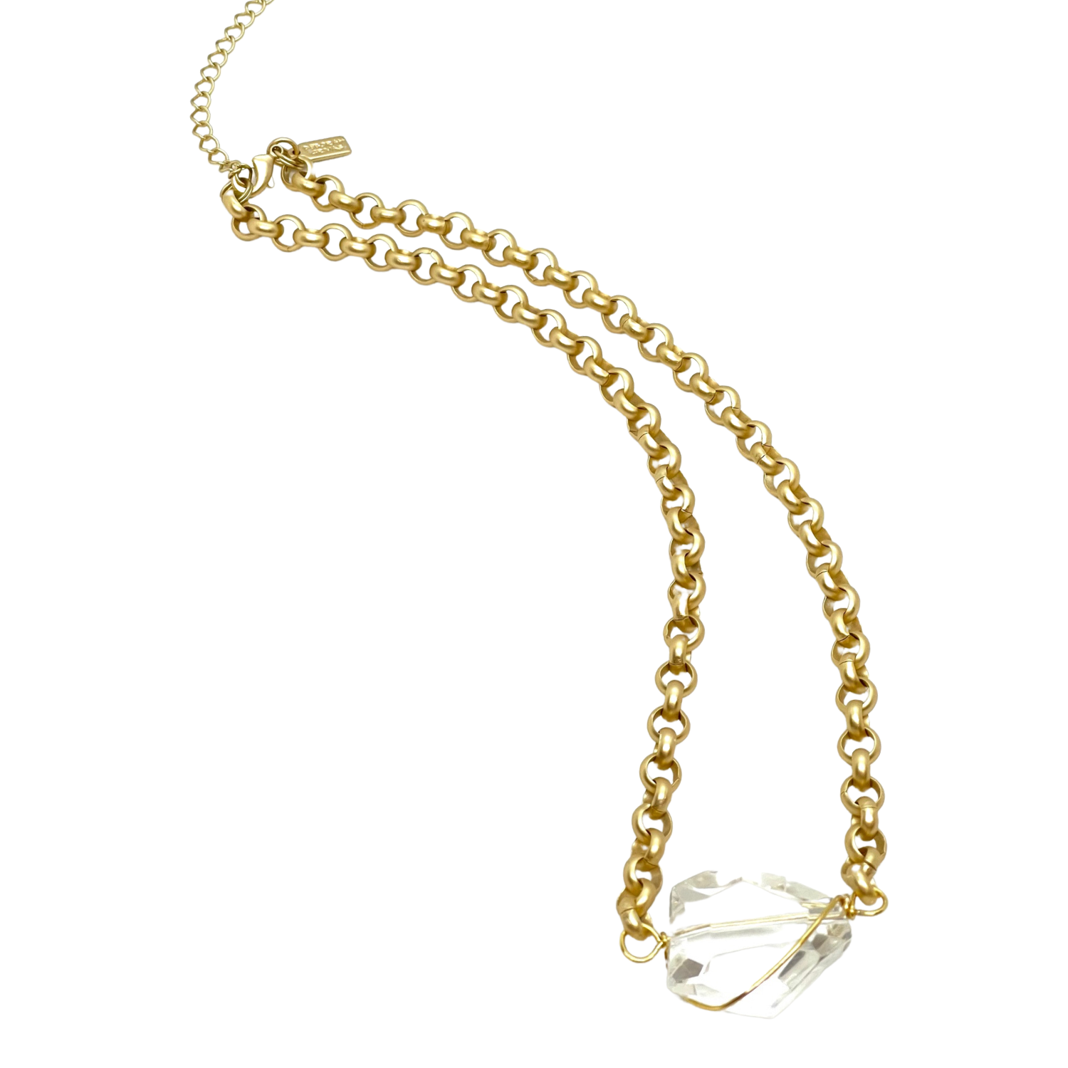 Wire Wrapped Clear Crystal Nugget on Matte Gold Chain