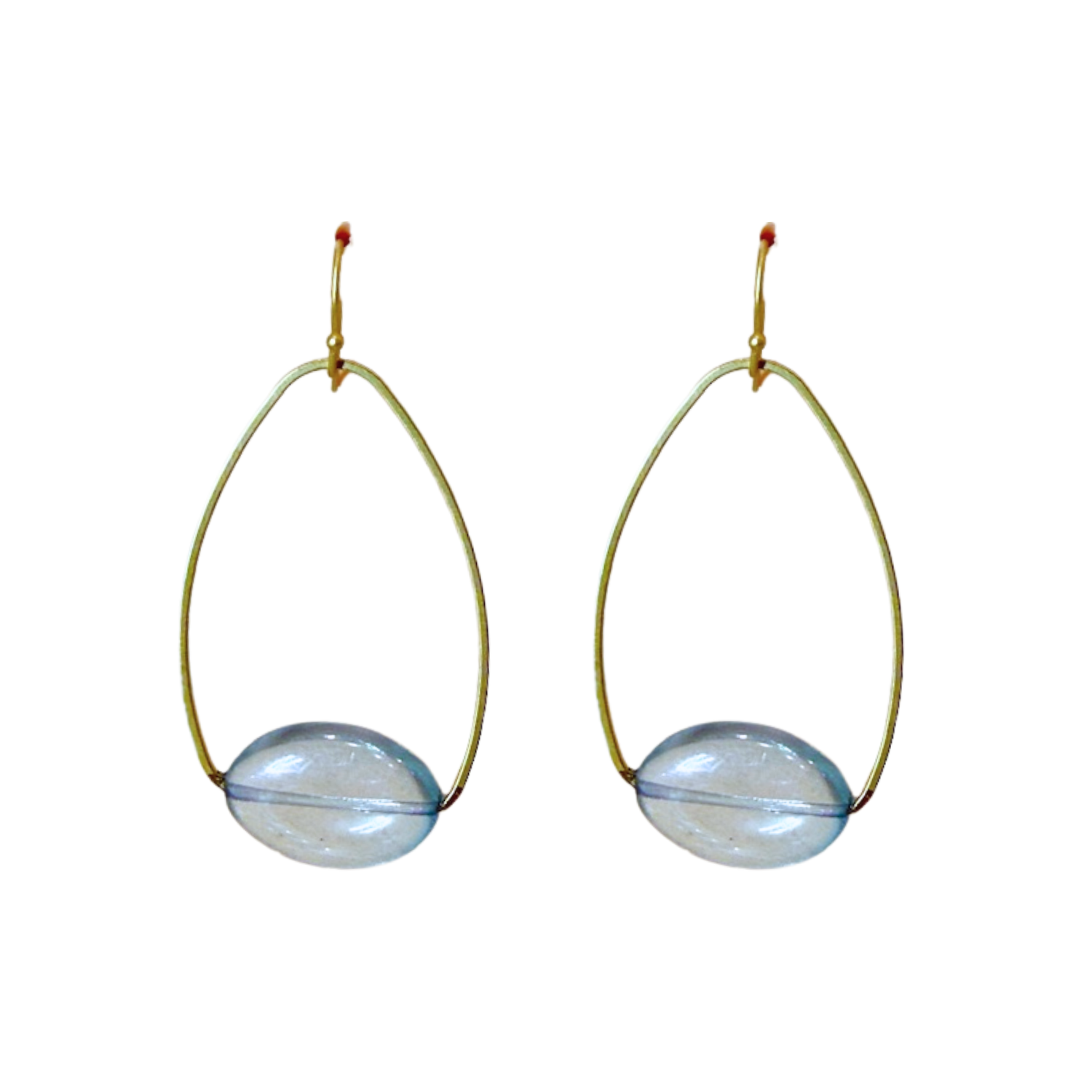 Blue Pressed Glass Inset Matte Gold Oval Earrings