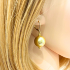 Champagne Bubble Pearl Earrings, featuring luminous 16mm glass pearls on a matte gold lever-back design.