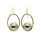 Taupe Pearl Wire Wrapped Matte Gold Oval Earrings