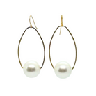 These earrings showcase 16mm white glass bubble pearls set within matte gold oval wire frames.