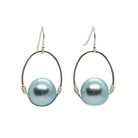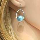 Aqua Pearl Wire Wrapped Matte Silver Oval Earrings