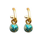 These matte gold hoop post earrings feature a paper clip design with a 10mm turquoise aqua terra charm.