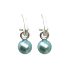 These matte silver hoop post earrings feature a paper clip design with a 10mm aqua pearl charm.
