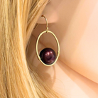 These earrings showcase 12mm burgundy glass pearls beautifully wire-wrapped in a sleek matte gold oval.