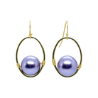 Lavender Pearl Wire Wrapped Matte Gold Oval Earrings