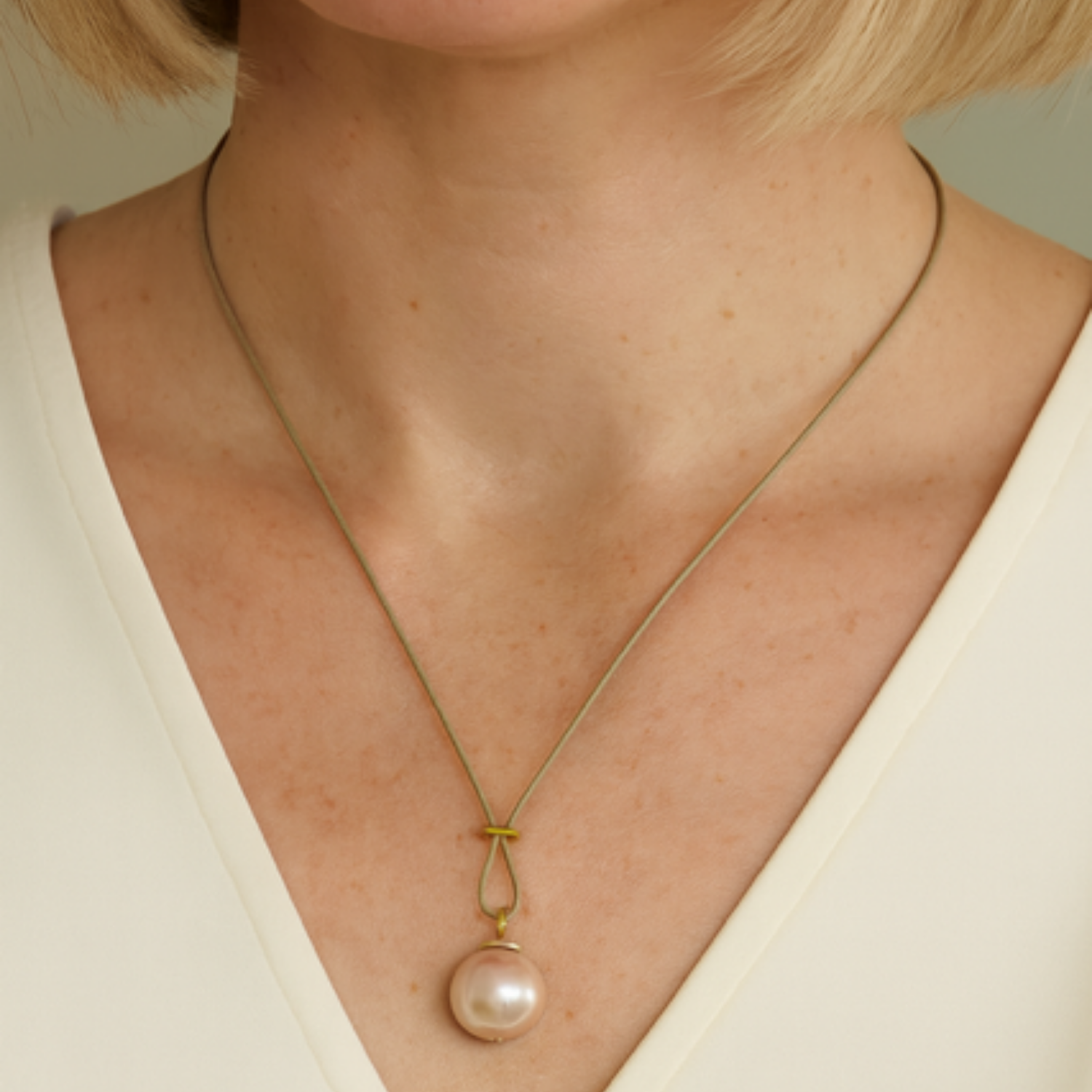 Large Pearl On Criss Cross Design On Natural Linen Cord