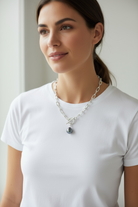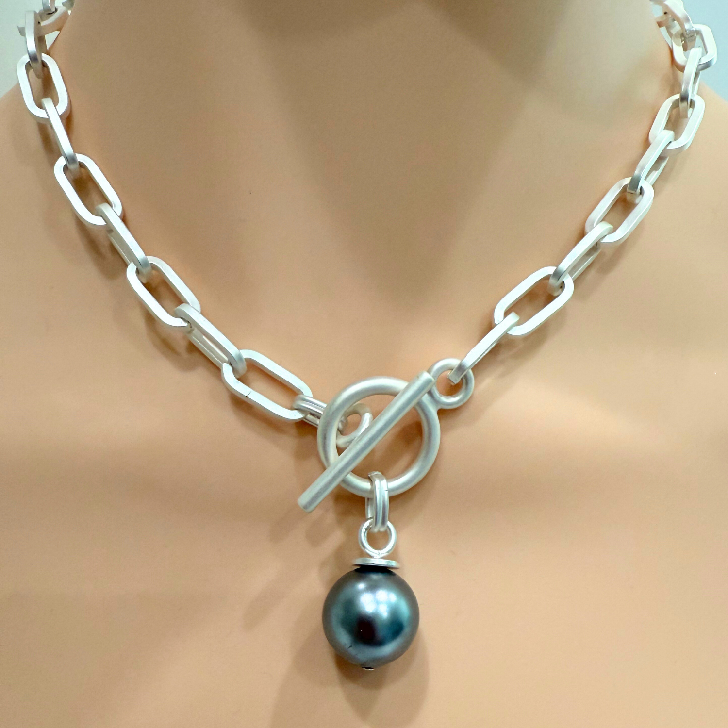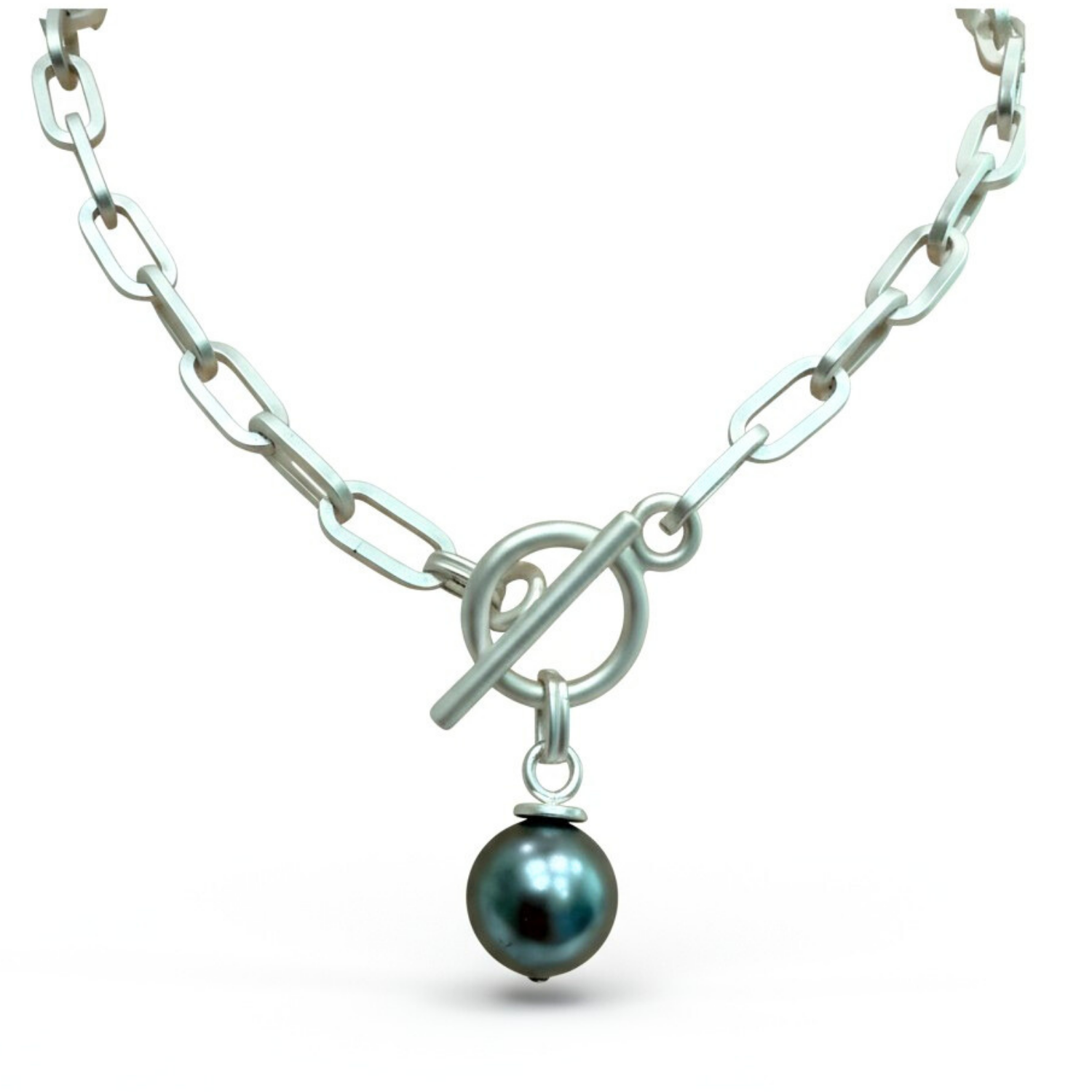 Matte Silver Paperclip Chain With Grey Bubble Pearl Pendant