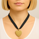 This 16-inch necklace features a medium (1.25") matte gold heart pendant on three strands of navy suede