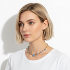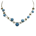 Blue Angelite and Matte Gold Disk Necklace