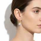 Matte Gold Paperclip and White Pearl Charm Earrings