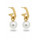 These matte gold hoop post earrings feature a paper clip design with a 10mm white pearl charm.
