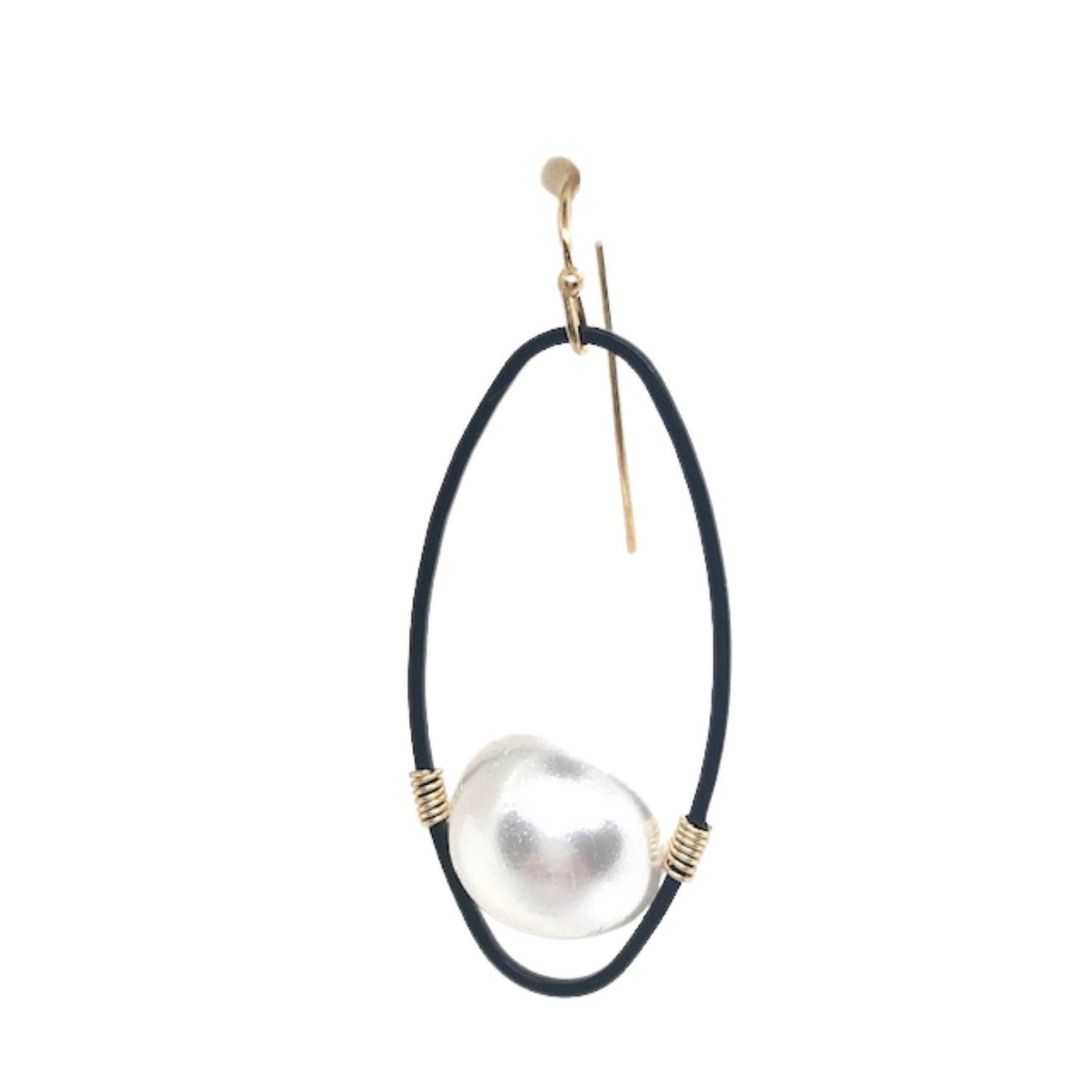 Pearl Gold Wire Wrap Matte Black Oval Earrings