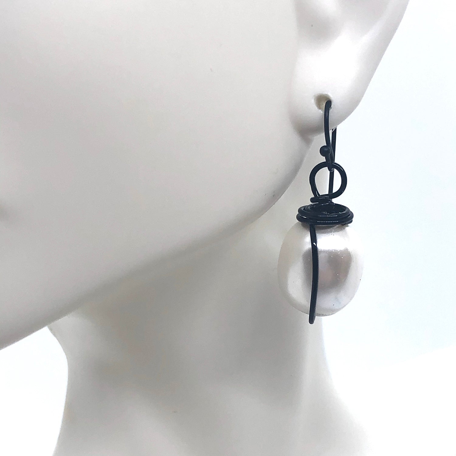 Mother Of Pearl Pearl With Black Wrap Earring