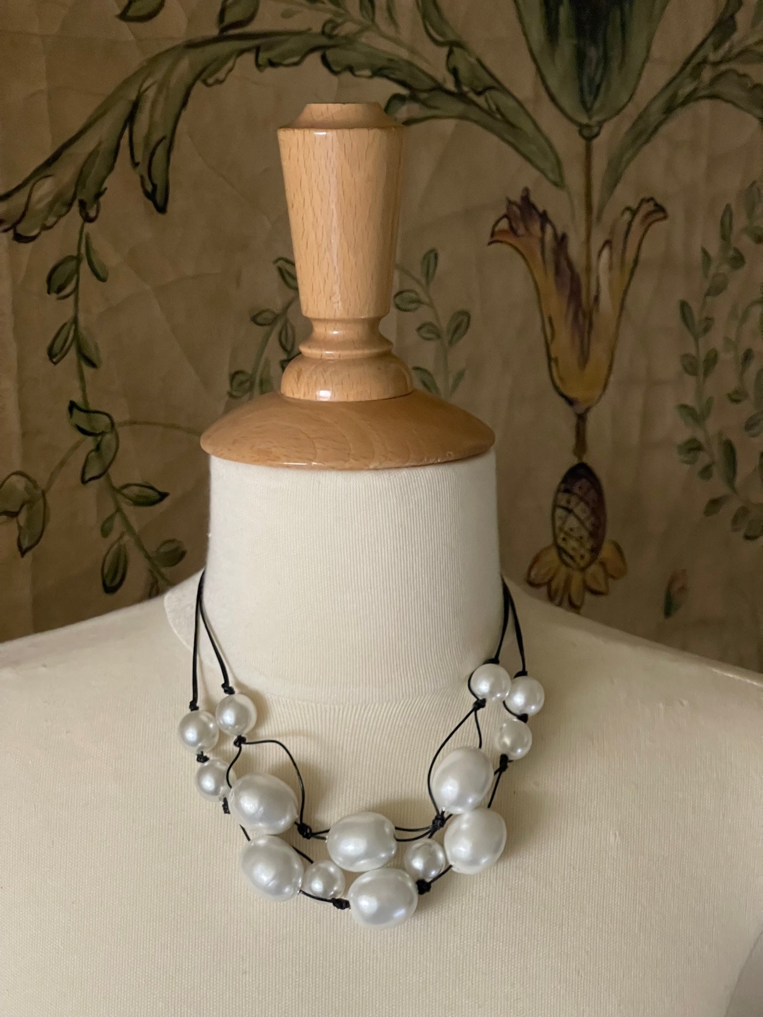 Cotton And Glass Pearl Necklace