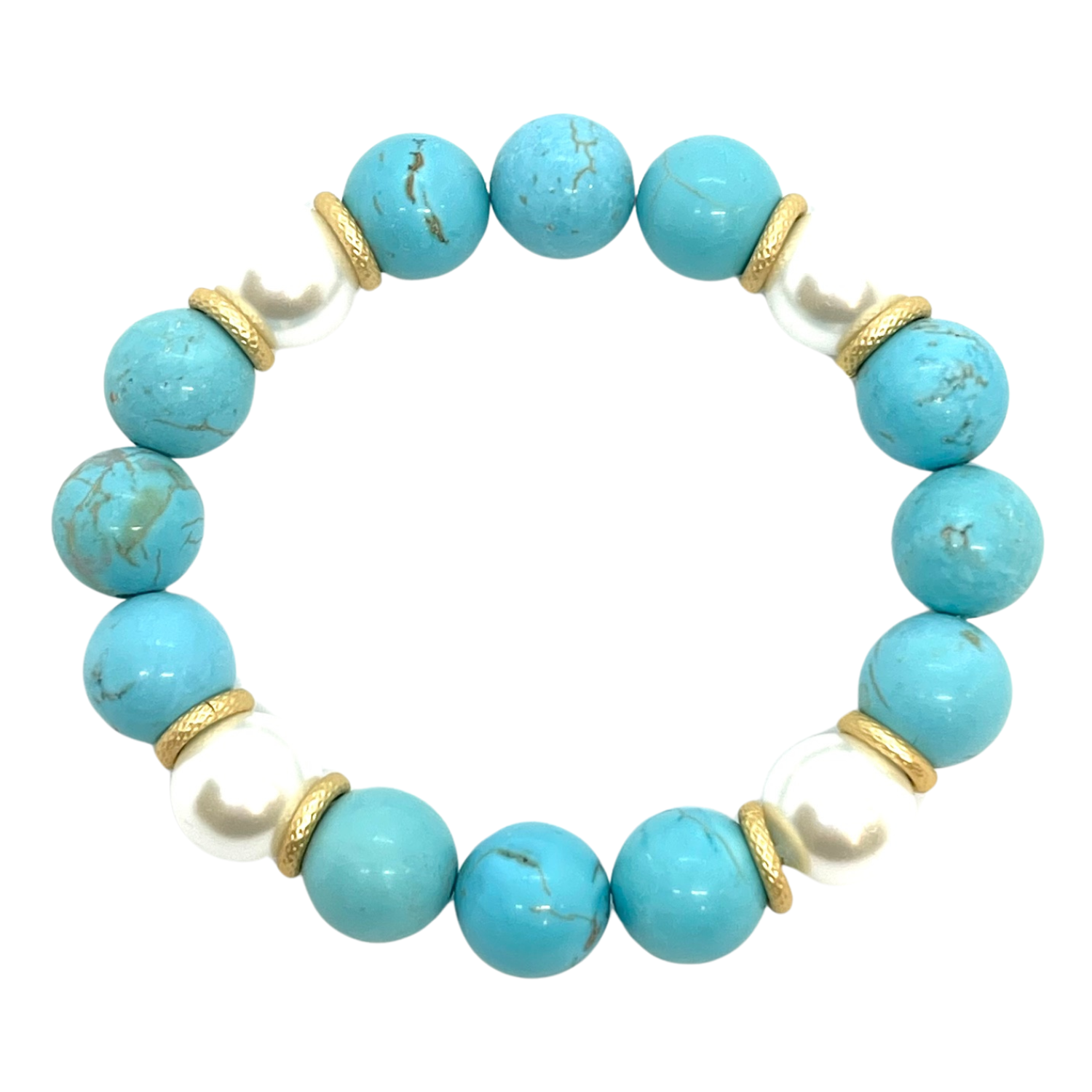 Turquoise Howlite and Glass Pearl Stretch Bracelet
