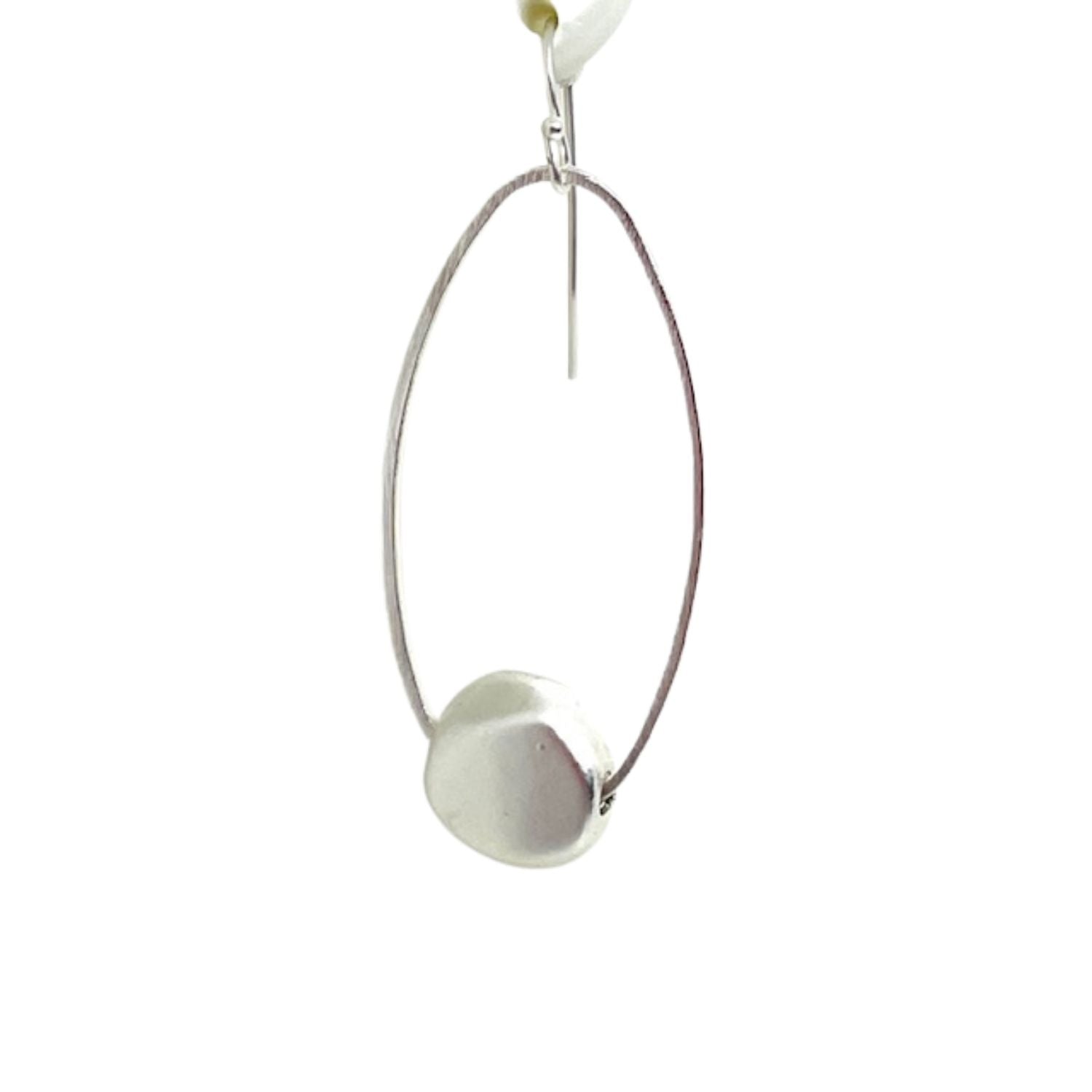 Matte Silver Flat Inset Oval Nugget Wire Earrings