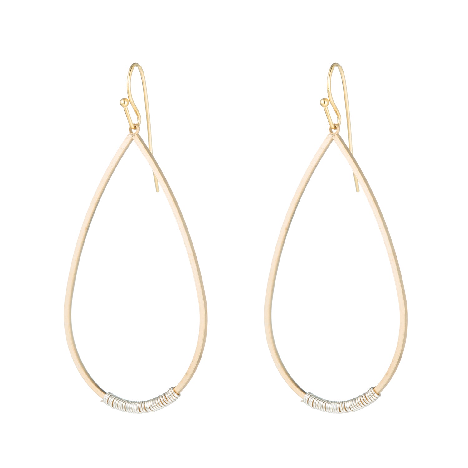 Matte Gold Silver Wire Wrapped Teardrop Earrings