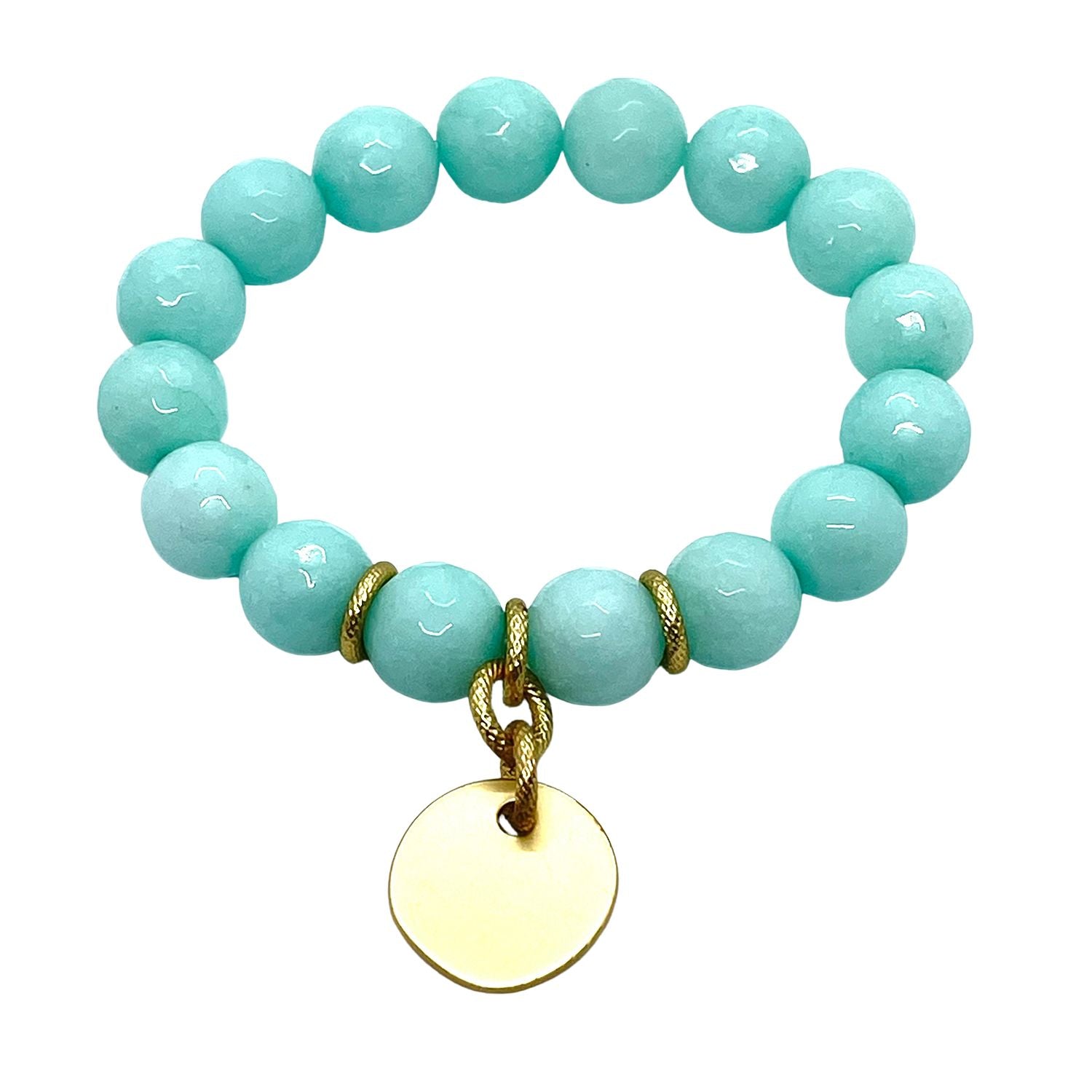 Aqua Jade Matte Gold Charm Stretch Bracelet