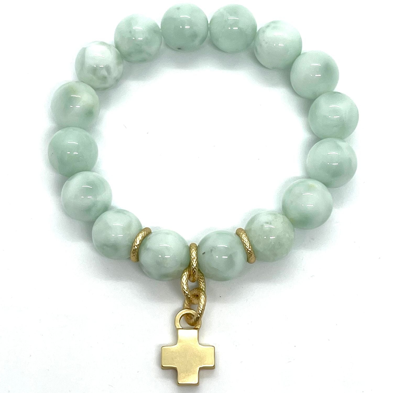 Angelite Stretch Bracelet With Matte Gold Cross
