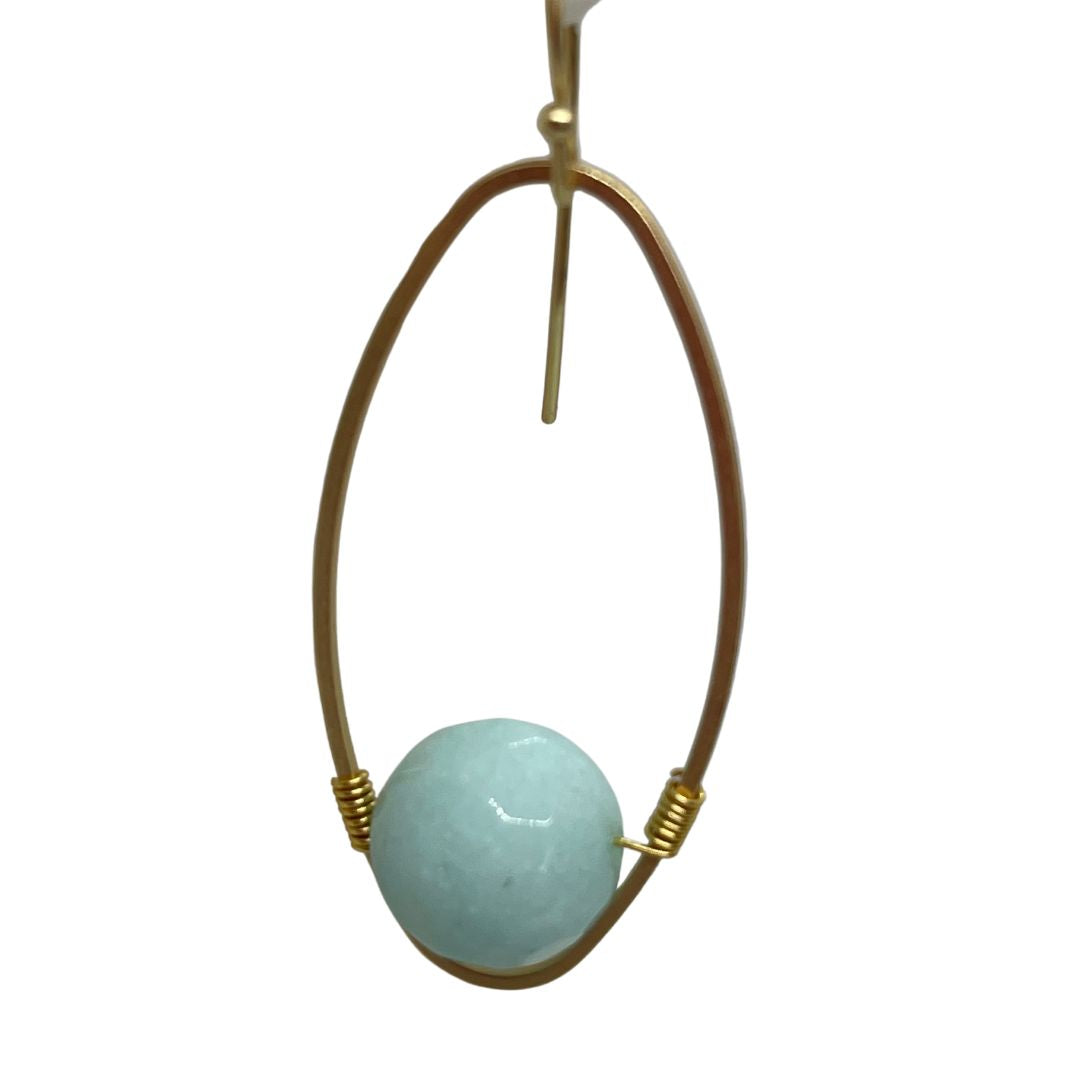 Aqua Jade Gold Oval Gold Wrap Earrings
