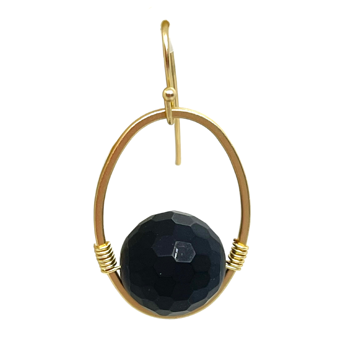 Black Onyx And Matte Gold Wire Wrap Oval Earrings