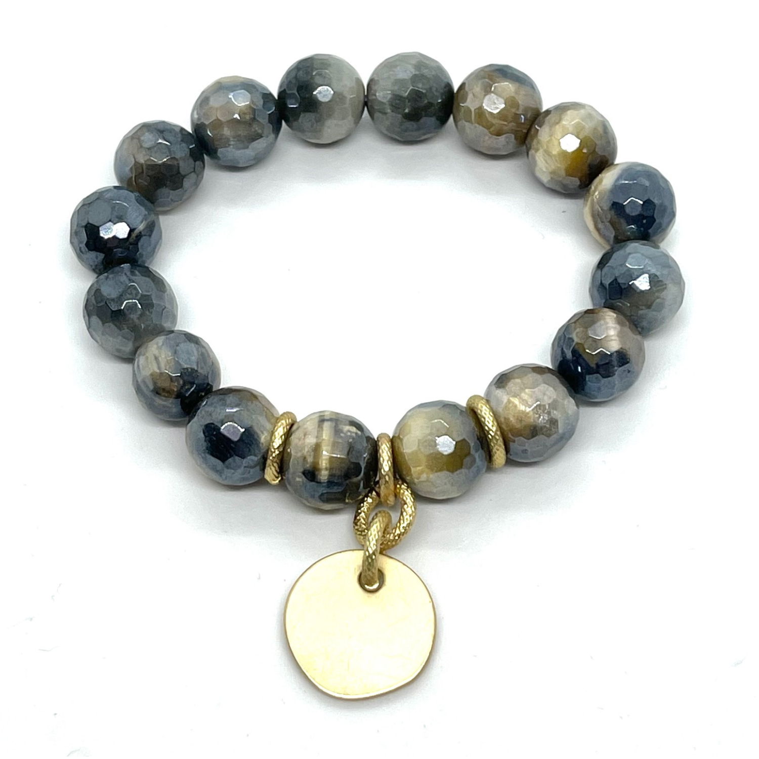 Blue Cream Tigers Eye Stretch Bracelet With Matte Gold Charm