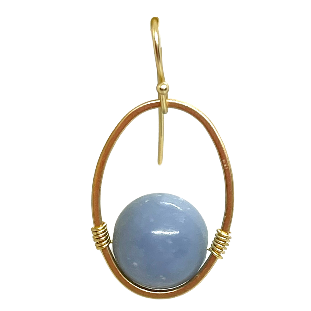 Blue Angelite And Matte Gold Oval Wrap Earrings