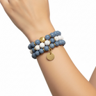 Blue Angelite Bracelet With Matte Gold Nugget Accent