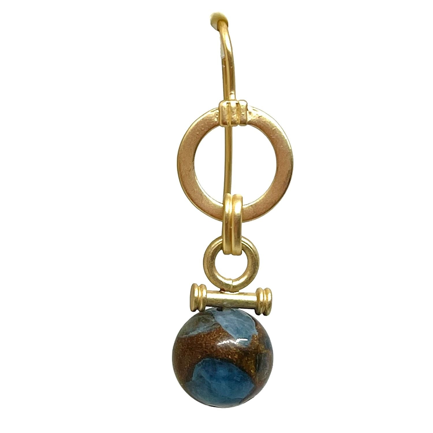 Matte Gold Circle Teal Quartz Bar Matte Gold Earrings