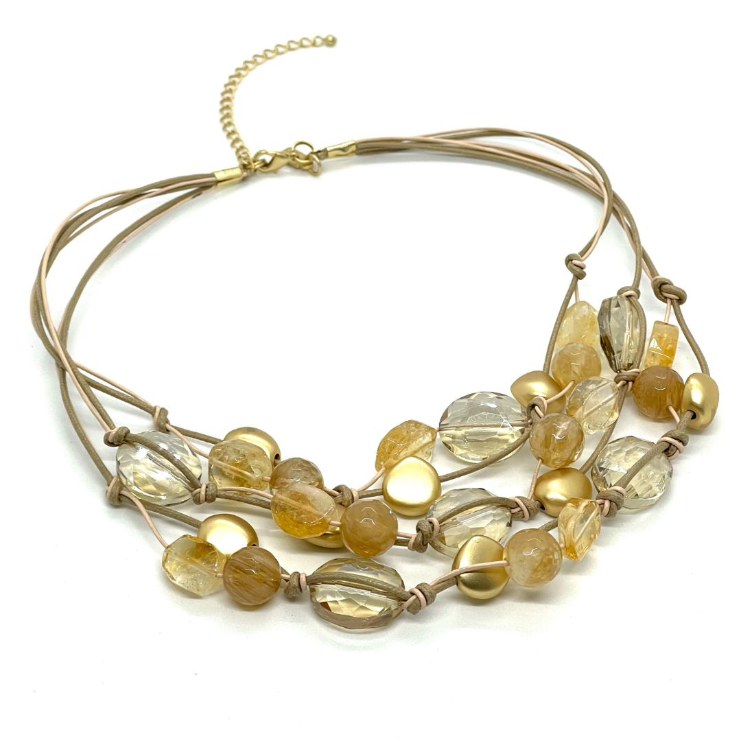 Citrine Quartz And Champagne Crystal Natural Linen and LeatherTorsade Necklace