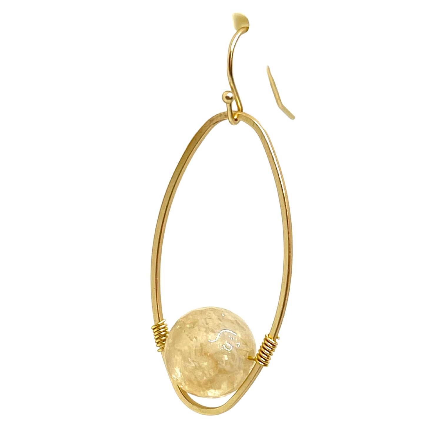 Citrine Quartz On Gold Oval Gold Wrap Earrings