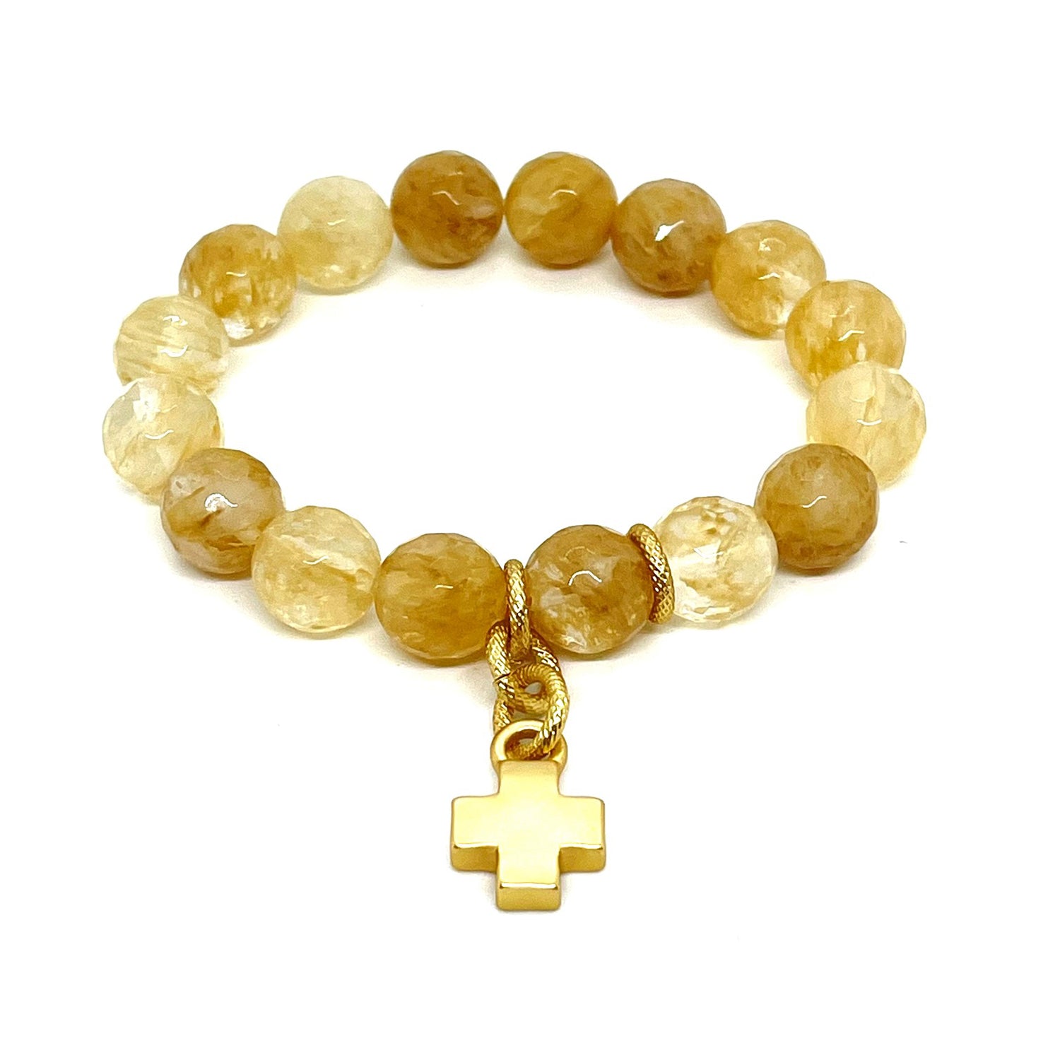 Citrine Quartz Stretch Bracelet With Matte Gold Cross