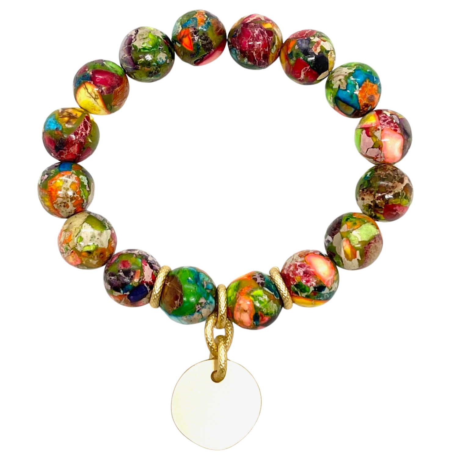 Confetti Jasper Stretch Bracelet With Matte Gold Charm Accent