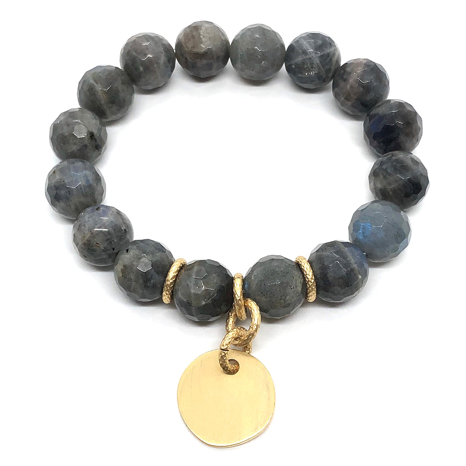 Natural Labradorite With Matte Gold Charm Stretch Bracelet