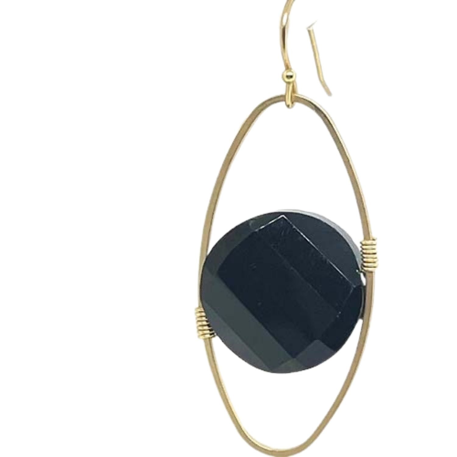 Black Coin Shape Crystal Matte Gold Oval Gold Wrap Earrings