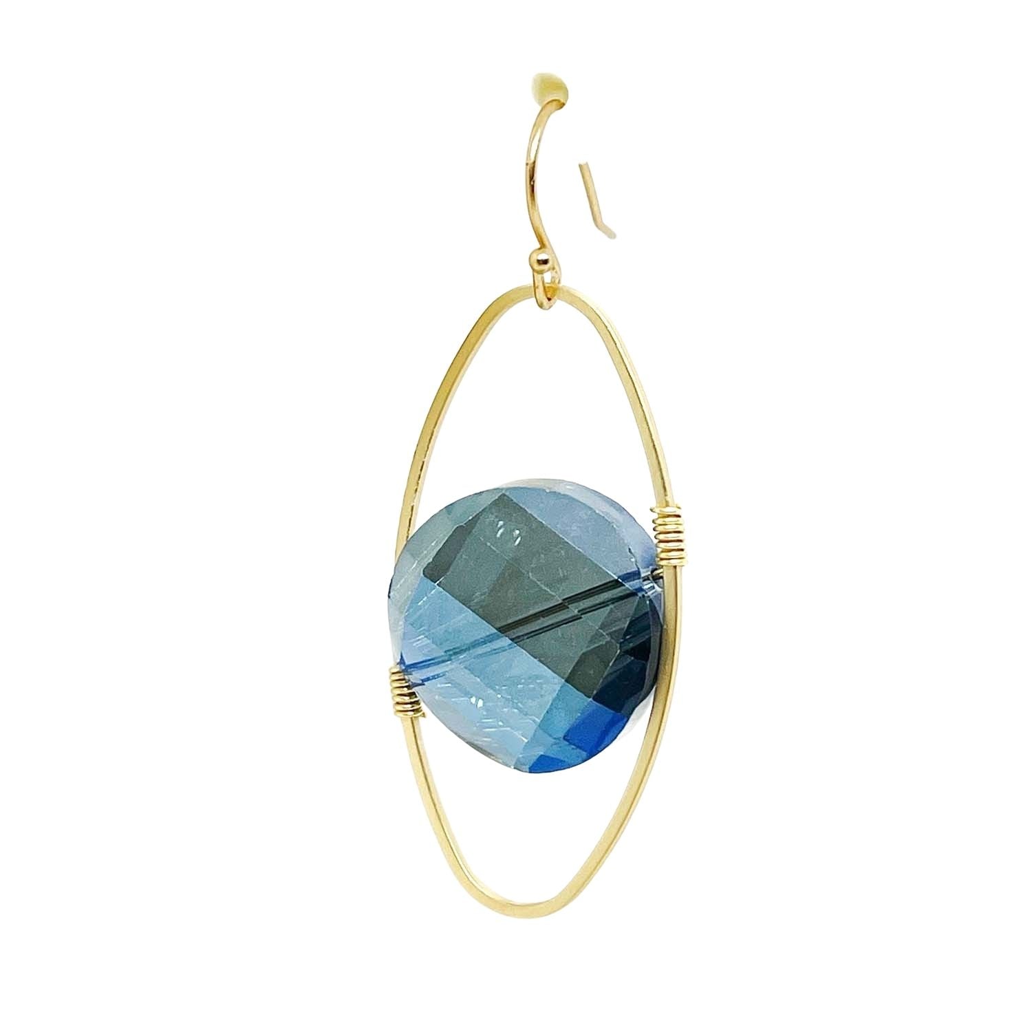 Labradorite Coin Crystal Matte Gold Oval Gold Wrap Earring